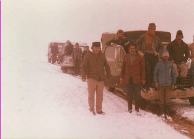 I percorsi stradali erano molto accidentati, tanto che ognuno dei mezzi fuoristrada disponeva di un esperto autista capace di guidare su ogni terreno; ricordo ancora il vero terrore provato durante il guado di impetuosi torrenti, con l'acqua che arrivava a metà sportello e spingeva l'auto pericolosamente verso valle, fino all'approdo liberatorio sull'altra sponda dopo interminabili minuti...